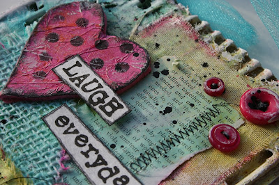 Hello mixed media fans. Today I"m sharing an altered cardboard project I created a while back after taking a class called "Burlap and Clay by Sue Pelletier. Sue is a very talented and published mixed media artist and you can check out more of her artwork on her blog HERE.